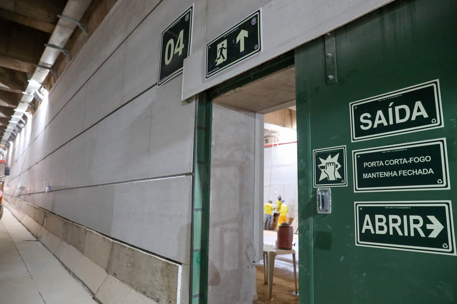 Primeiras placas fixadas nas paredes indicam velocidade máxima adotada na passagem subterrânea Sessenta quilômetros por hora. As placas que indicam a velocidade máxima a ser